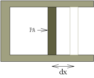 If the piston is moved by the distance dx due to the pressure P, or the force PA, then