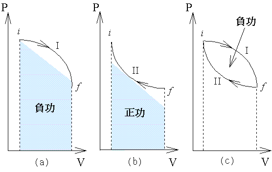 (c)圖中系統經由準靜過程I和II,從i到f再從f到i所作之功為W=