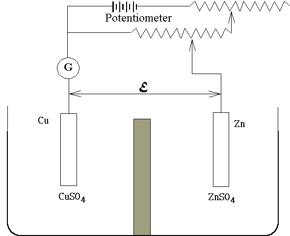 準靜過程:外加之電位計(potentiometer)可以無限小改變電位,使得其電位與電池的電位,E,的差異可以無限;這就是一個準靜過程。