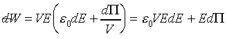 :表示增加電場強度由E到dE所需之功。這項代表平行電容板在沒有介電質的情況。
