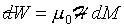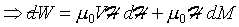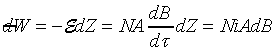 我們所考慮之熱力學系統是被線圈圍繞的物質,故功的數學式為