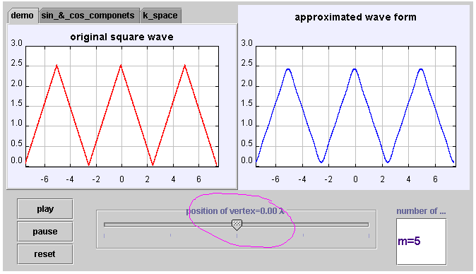 ,最大的不同點在於鋸齒波可調的是波形的頂點位置(x位置),可利用面板下方中央的橫桿左右移動的改變數值。